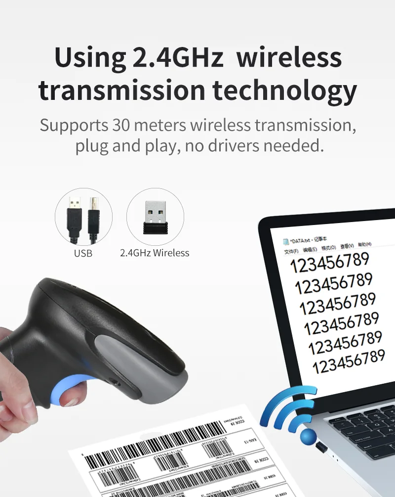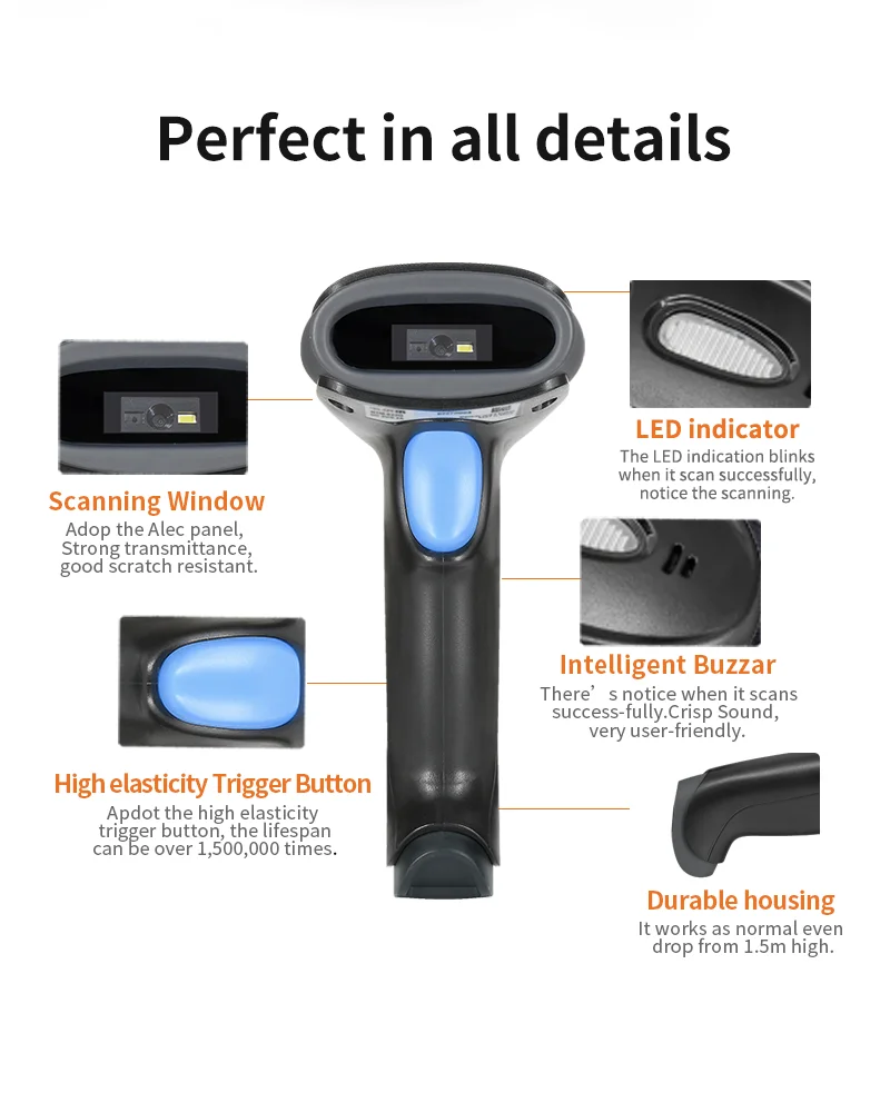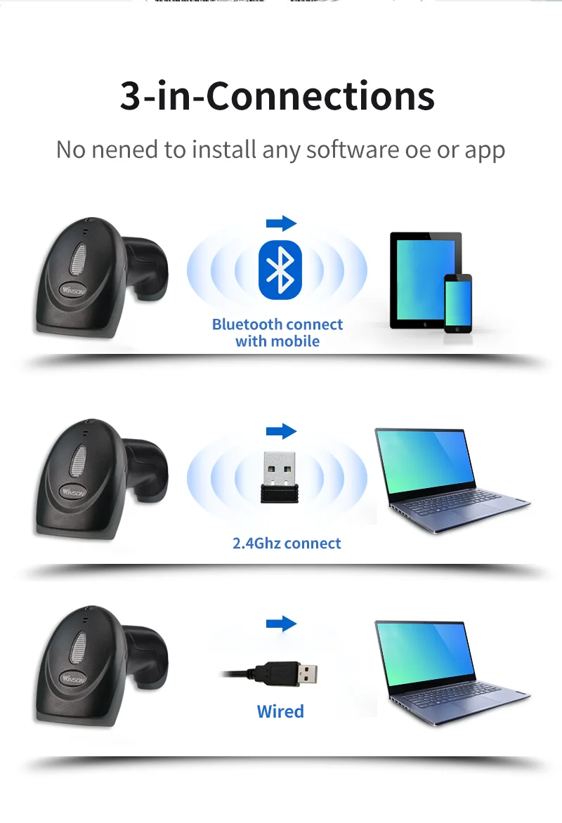 Supermarket Price Handheld Barcode Reader Wireless Barcode Scanning Gun BT 1D/2D QR Bar Code Reader 1D 2D Laser Barcode Scanners