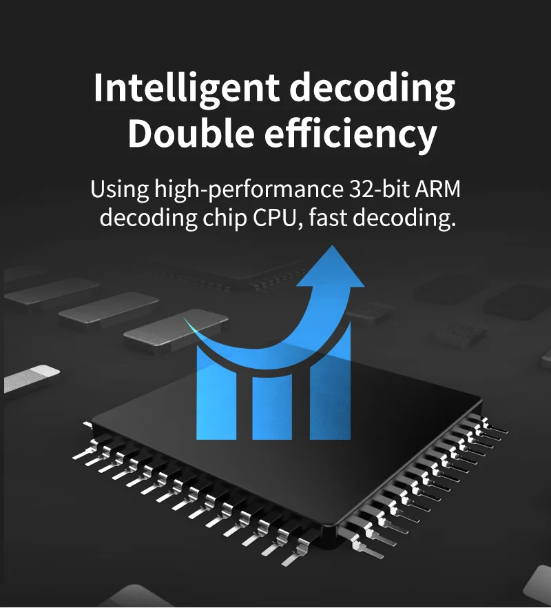 Decode Capability | 1D:EAN-13,EAN-8,UPC-A,UPC-E,ISSN,ISBN,CodaBar, Code 128,Code93,ITF-14,ITF-6,Interleaved 2 of 5, Industrial 2 of 5,Standard 2 of 5,Matrix 2 of 5,GS1 Databar(RSS),Code 39,Code 11,MSI-Plessey,GS1-Composite 2D:QR Code,Data Matrix,PDF417,Micro PDF417,Micro QR, Aztec,Maxi Code,HanXin code |