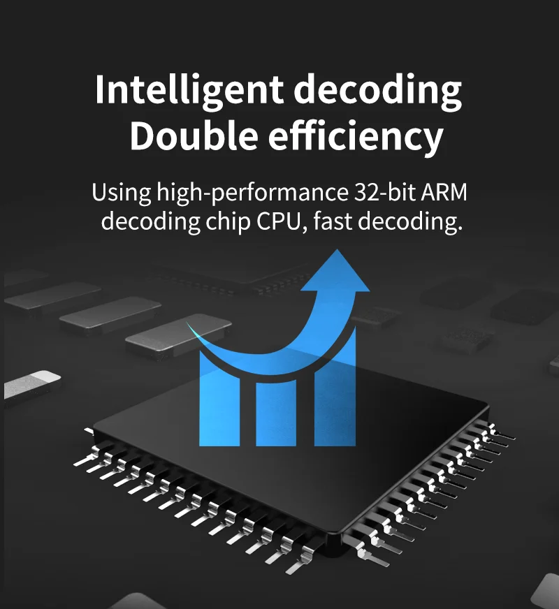 Decode Capability | 1D:EAN-13,EAN-8,UPC-A,UPC-E,ISSN,ISBN,CodaBar, Code 128,Code93,ITF-14,ITF-6,Interleaved 2 of 5, Industrial 2 of 5,Standard 2 of 5,Matrix 2 of 5,GS1 Databar(RSS),Code 39,Code 11,MSI-Plessey, GS1-Composite 2D:QR Code,Data Matrix,PDF417,Micro PDF417,Micro QR, Aztec,Maxi Code,HanXin code |