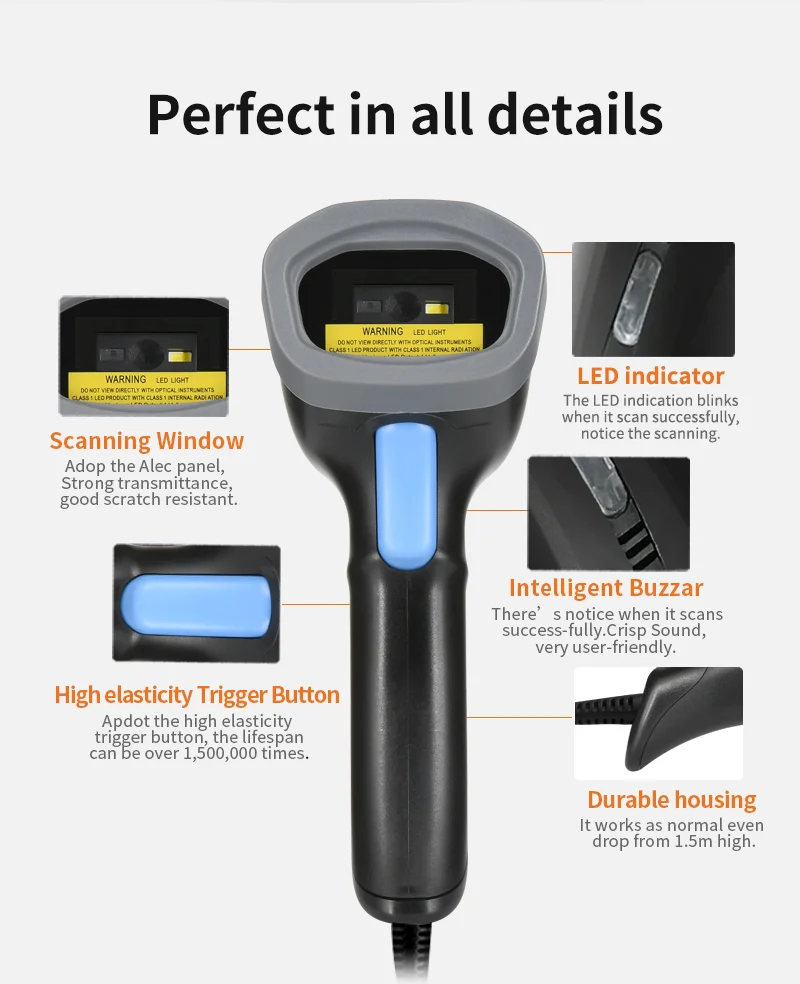 1D 2D Wired USB Qr Bar Code Reader Supermarket Handheld Barcode Scanner for POS Solutions